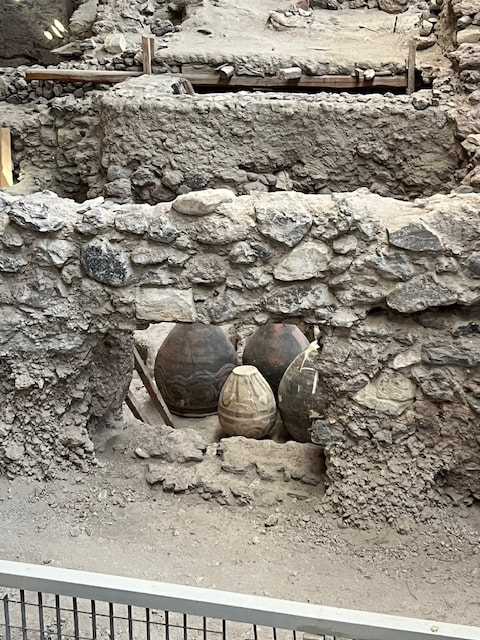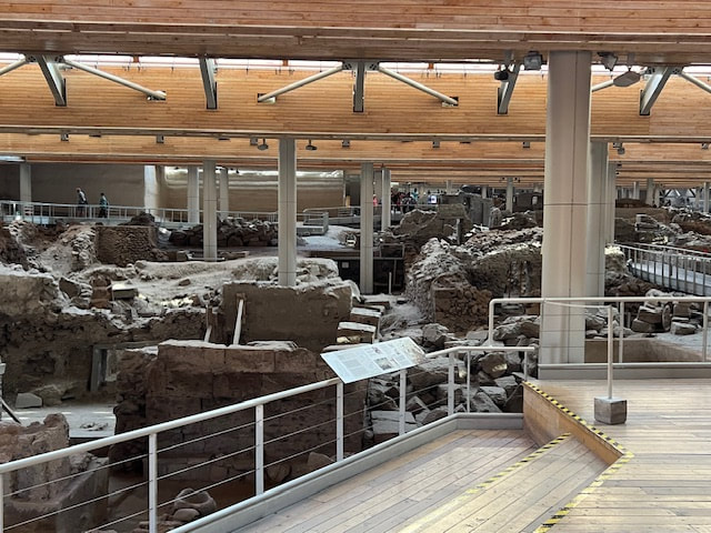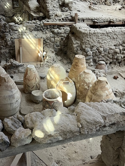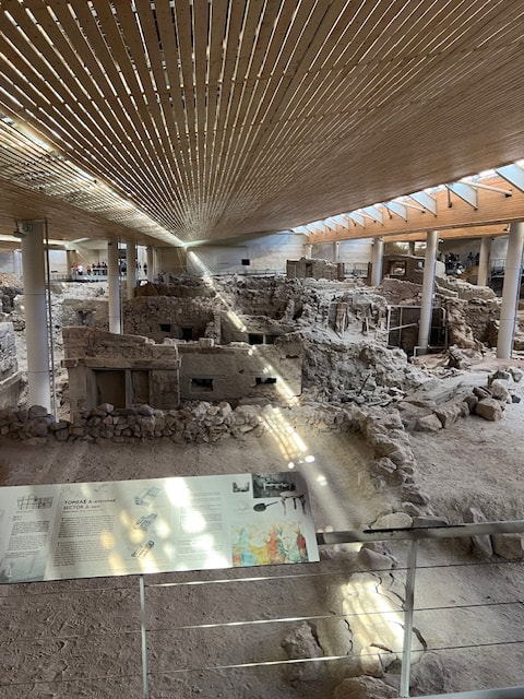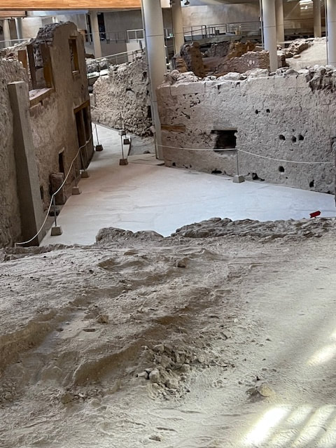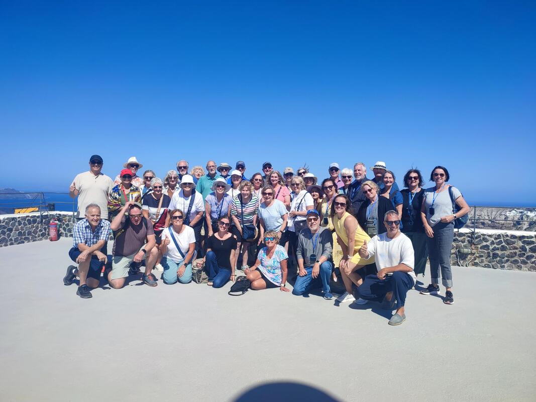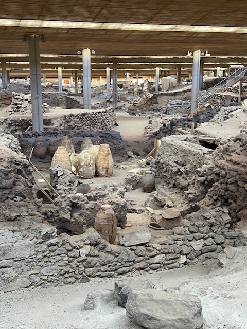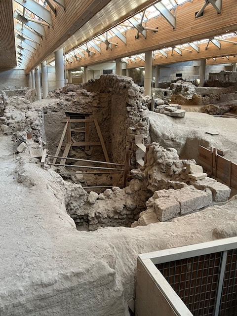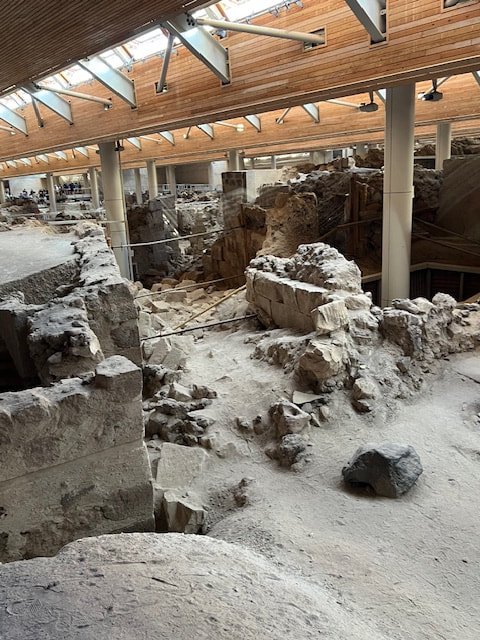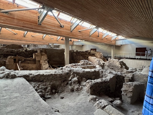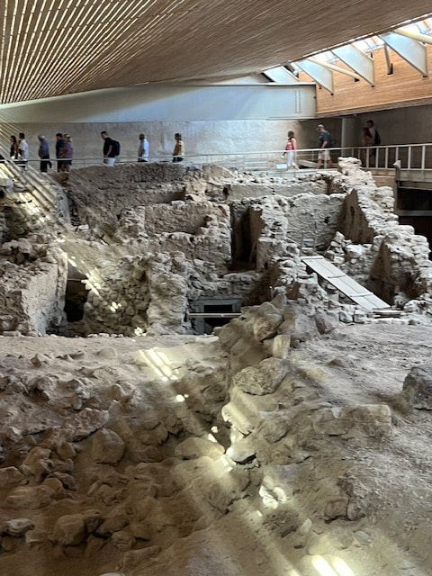 We began our next day with a visit to the excavation site of ancient Akrotiri, the most important prehistoric settlement found anywhere in the Eastern Mediterranean. Known as the "Minoan Pompeii," the flourishing town was at once destroyed and preserved by a volcanic eruption around 1450 B.C.