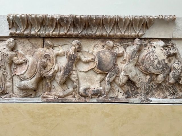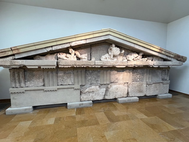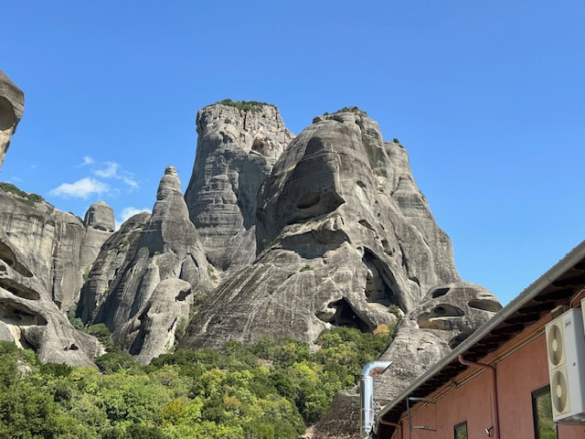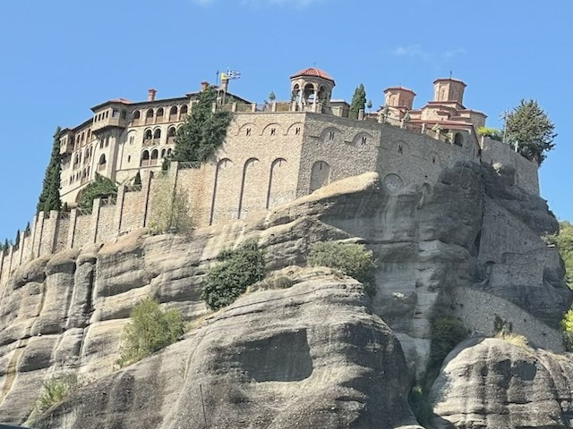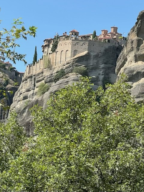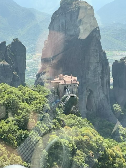 The next day we bussed north through central Greece to Thermopylae. We stopped to see a monument dedicated to Leonidas who died defending the city against the Persians. We arrived in Metéora to visit two remote monasteries (Variaam and St. Stephen) situated in a unique landscape of limestone rock “towers” that extend nearly 900 feet into the air. Over 600 years ago, Byzantine monks chose to build their monastic community perched atop these virtually inaccessible rocks. (climb was 200 steps)