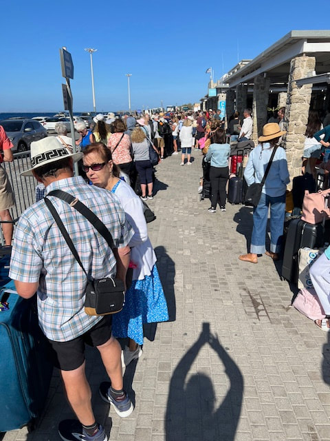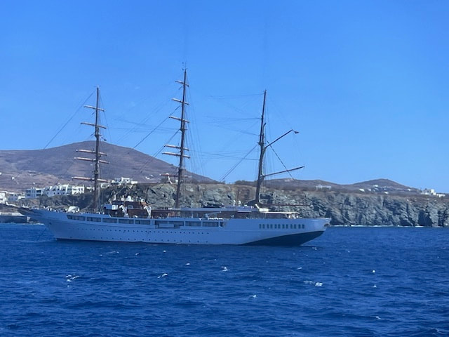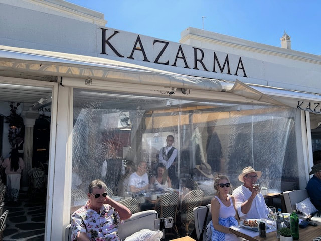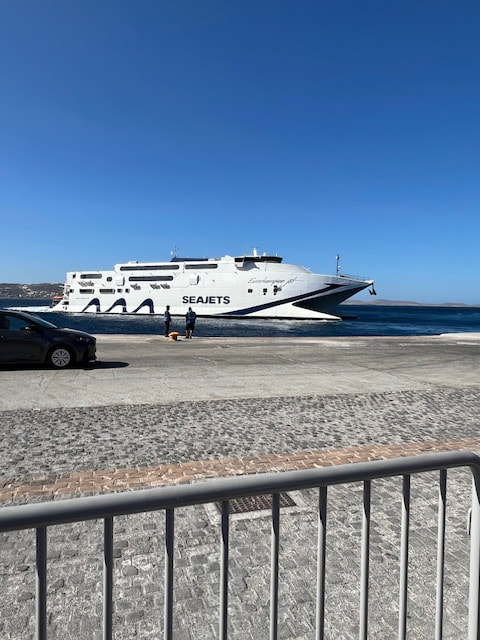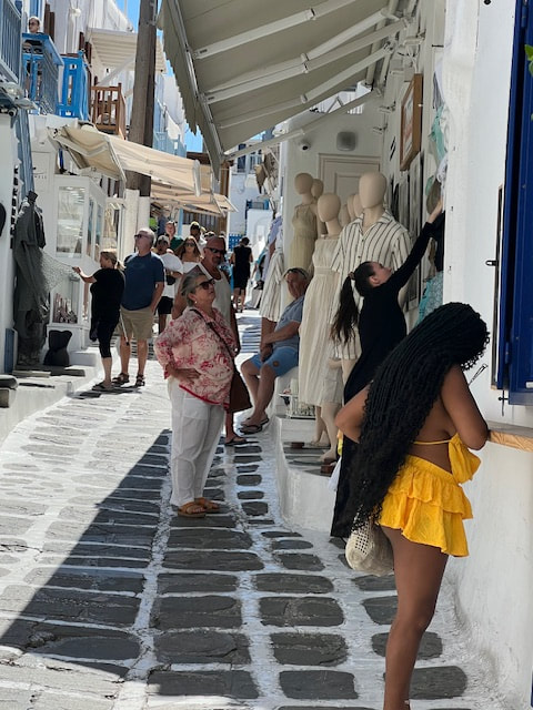 Our next destination was the coastal city of Nafplio. Short tours were offered here. Then on to Tolo.. We toured an ouzo distillery. We learned how to drink, and like, ouzo! Later, I found the food and shopping to be quite wonderful. The next morning we bussed to the port of Athens for the high-speed ferry ride to Mykonos, the whitewashed jewel of the Cyclades Islands. We enjoyed magnificent views as we cruised across the brilliant Aegean Sea to this island paradise. The ferry ride was enlightening. There were no porters. The ferry docked, a couple thousand people and cars raced off the ferry. Then we (and a couple thousand others) raced up the bumpy and ridged ramp with all our luggage. We massively raced to exit the ferry in Mykonos. The ferry waited for no slackers. We spent time in Chora (Mykonos Old Town), where mazes of narrow streets link the whitewashed buildings and traditional life continues amidst the bustling activity. Mykonos offered lots of interesting and fun shopping for our free day.