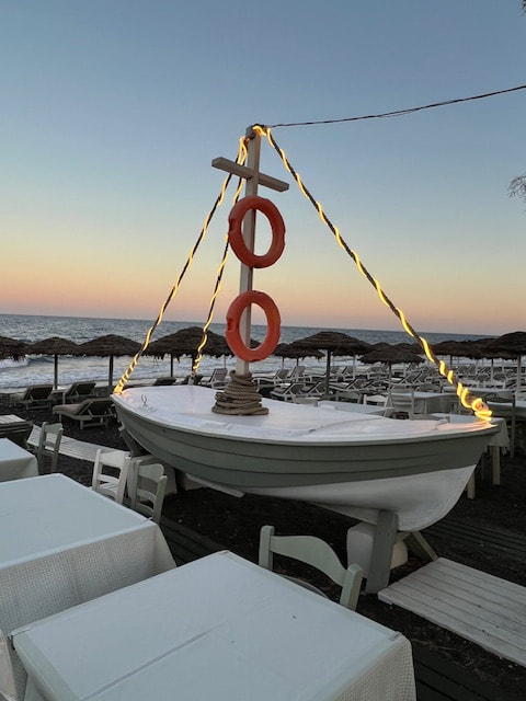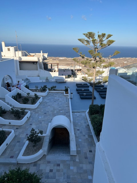3-course dinner in an open setting with breathtaking views of the rich, blue Aegean waters. We sat back and relaxed as we toast to this incredible experience