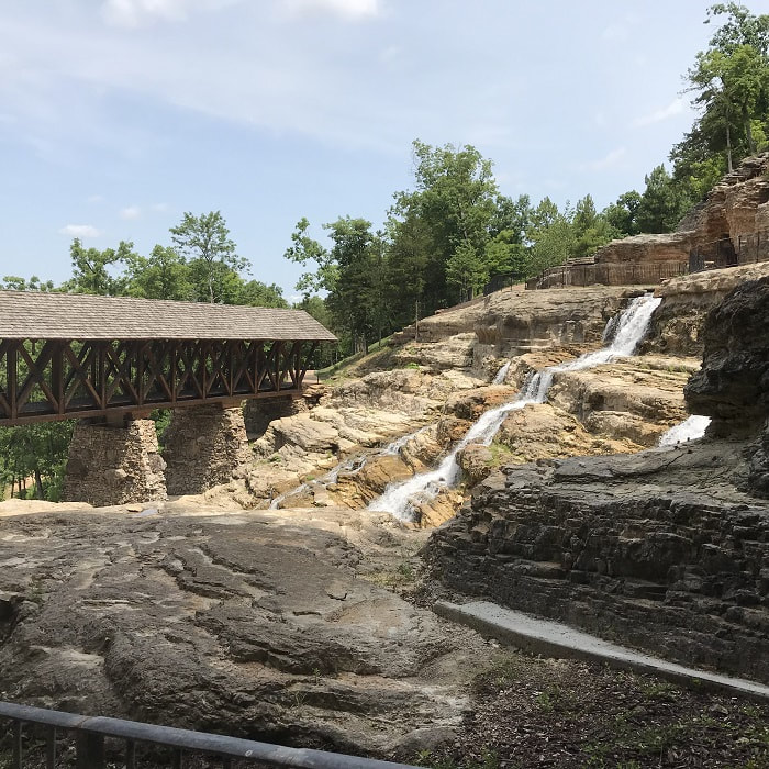 After the tour and exploring the rest of the nature center, we had dinner on the patio across from a beautiful waterfall. The next day we went to the Top of the Rock Lost Canyon Cave and Nature Trail.We started our tour in a golf cart. The property included a paved two-and-a-half mile trail to follow. The scenery was jaw dropping. There did seem to be plenty of construction going on along the trail to improve the viewing and photo opportunities.